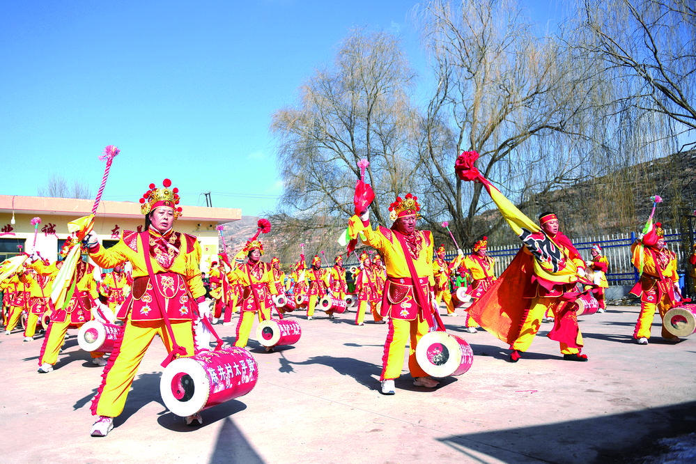 春节期间、永靖县乡村社火队走乡串户为群众表演传统民俗节目