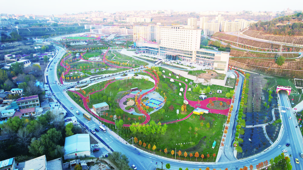 东乡县劳动文化公园和县城新公园楼宇相映成趣,美如图画