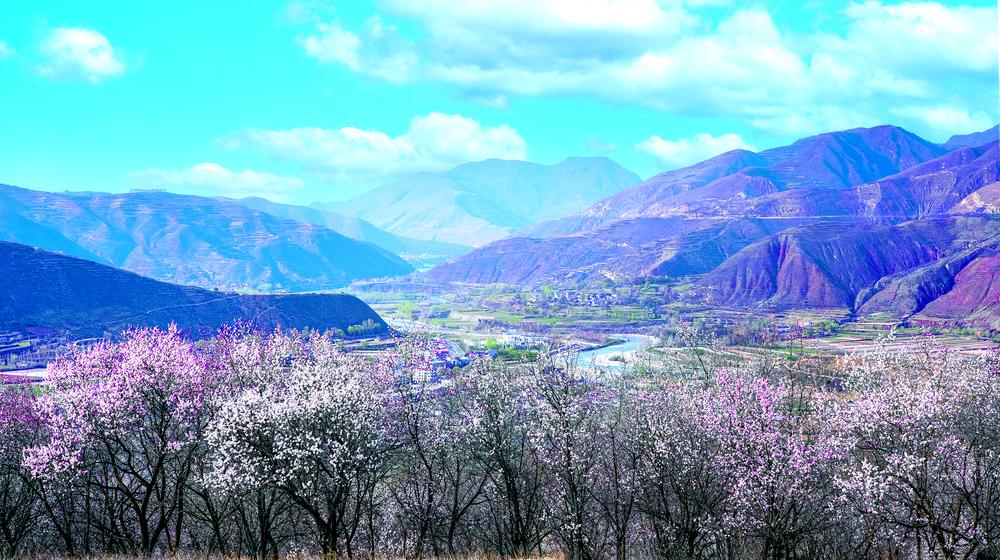 康乐县莲麓镇河口景区拉扎山万株杏花竞相绽放