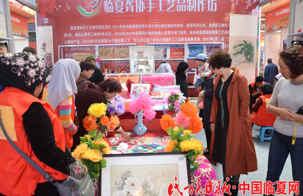 在临夏市河州商务会展中心一号馆——牡丹系列商品展馆内,有一处展位格外醒目。展位前挤满了人,却听不到展位负责人的声音,听到都是人们的感叹声。“真的太了不起了!这些作品我们正常人都很难做出来,他们是怎样做到的?给他们点赞!”