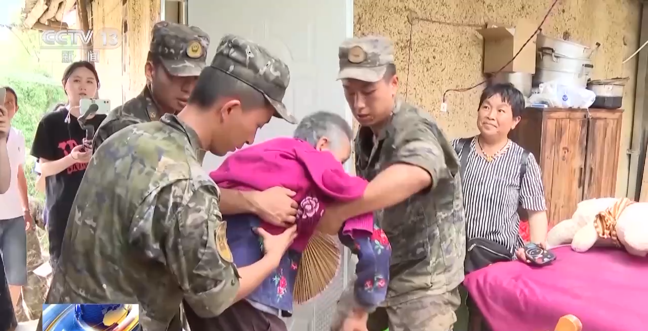 经过清点核实,共有5户11名村民需要转移。其中,有一名88岁的老人由救援人员用凳子抬着老人通过危险路段,并有序组织其余村民们撤离。