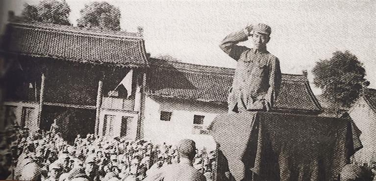 1949年7月31日,清水解放,王震将军在庆祝大会上讲话。