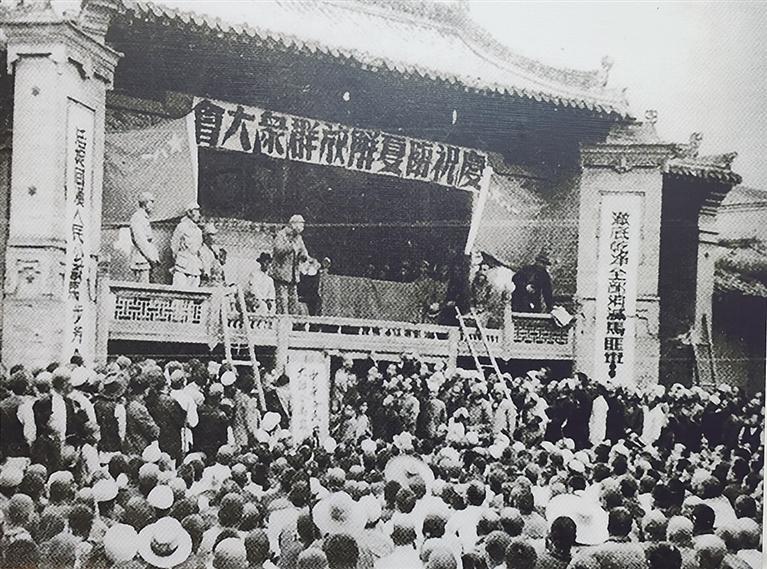 1949年8月25日,临夏各族群众集会庆祝解放。