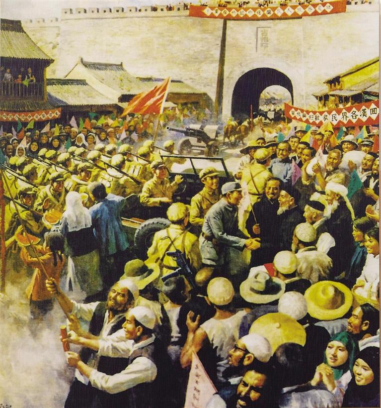 临夏各族群众欢迎人民解放军(油画)