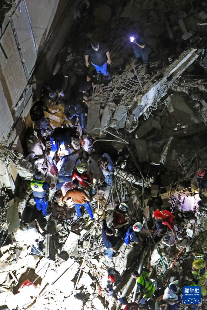 7月30日,在黎巴嫩贝鲁特南郊,救援人员在以军袭击毁坏的建筑废墟上搜寻幸存者。新华社发(比拉尔·贾维希摄)