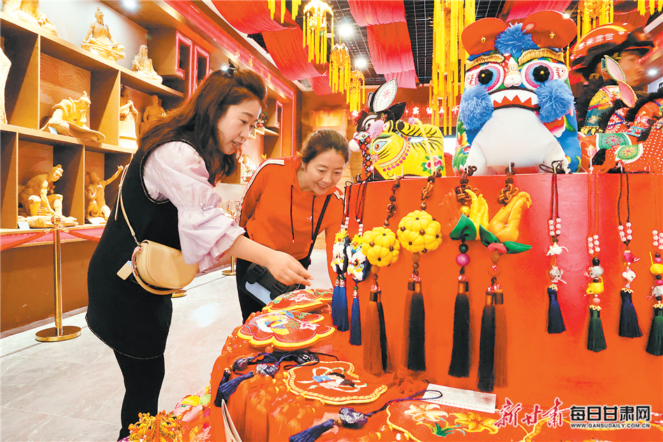 游客在庆阳香包民俗文化节上选购商品。新甘肃·甘肃日报通讯员 盘小美