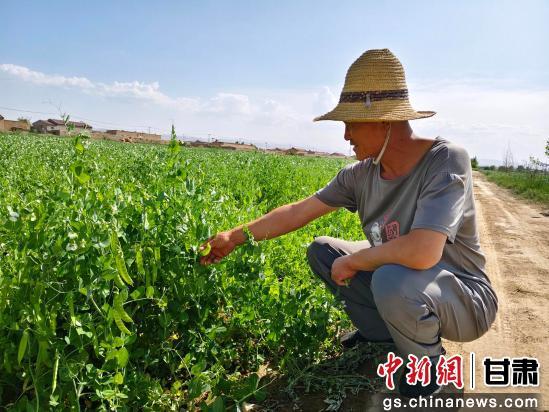 中新网甘肃新闻6月16日电 (朱淑珍)盛夏时节,在古浪县直滩镇上滩村的豌豆种植基地里,连片的豌豆秧苗随风摇曳,农户正忙着除草、掐秧,颗粒饱满的豌豆挂满枝头,承载着村民们增收致富的美好愿景。