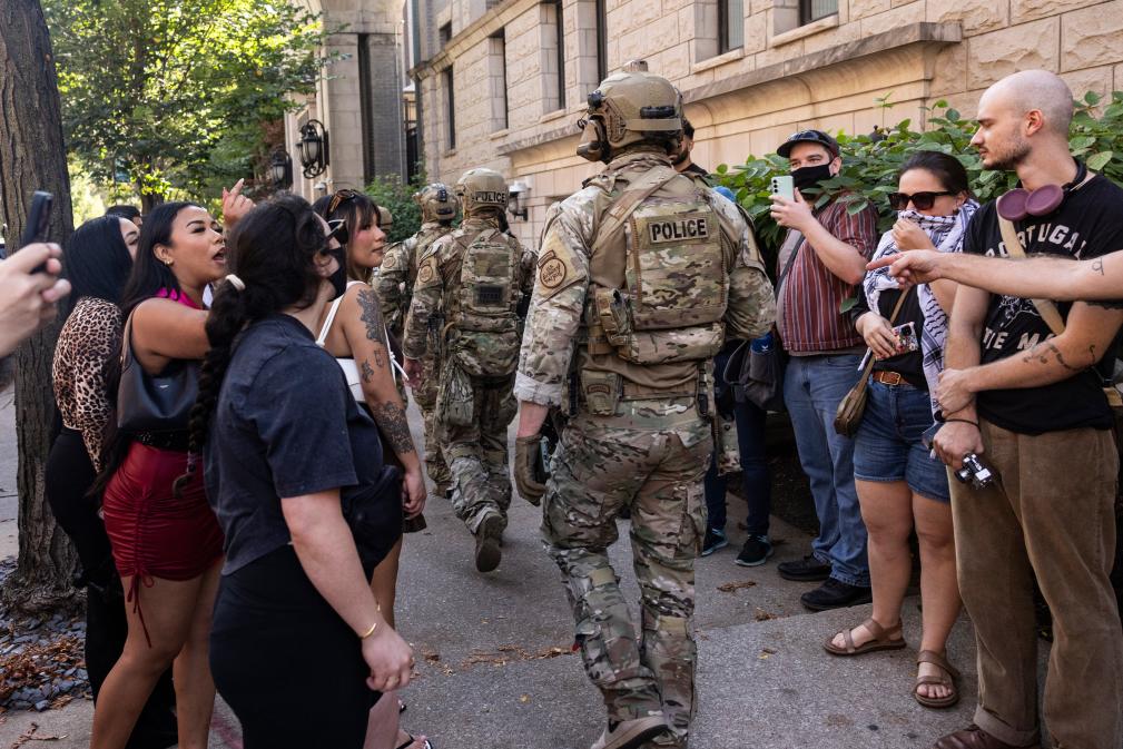 据美联社报道,28日,数十名全副武装的联邦执法人员在芝加哥市一些著名的旅游和购物区巡逻,吸引不少购物者和在街边咖啡馆用餐的家庭注意,许多人拿出手机录像。