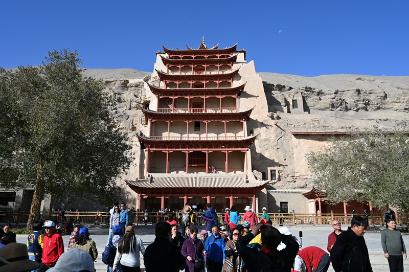 游客在莫高窟参观。人民网 席娟娟 摄