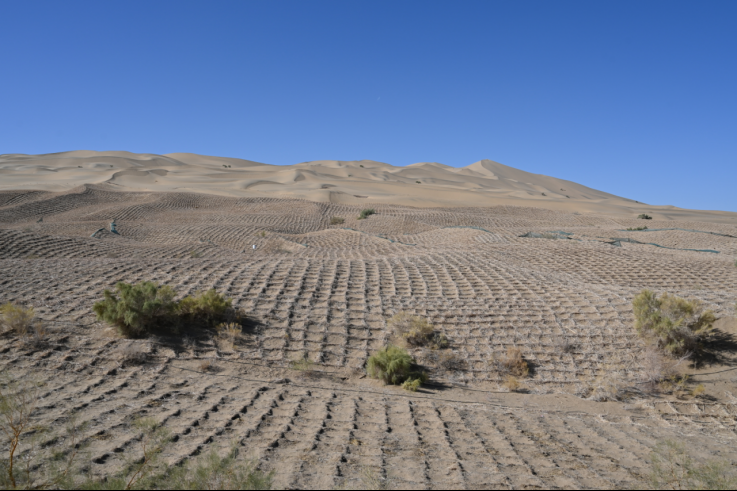 然而,现有风沙灾害综合防护体系自2011年建成至今,经过14年的运行,大部分草方格沙障和尼龙网沙障由于风吹日晒、雨淋老化失效或被流沙掩埋,风蚀,综合防护效益减弱。