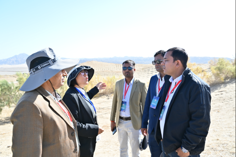 嘉宾在风沙环境综合治理项目参观了解。人民网 席娟娟 摄