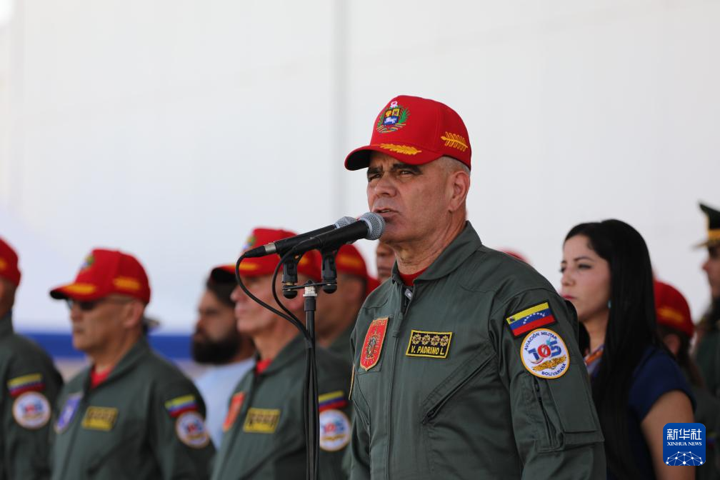 11月27日,在委内瑞拉马拉凯市的解放者空军基地,委内瑞拉国防部长洛佩斯在空军成立105周年纪念活动上发表讲话。新华社发(委内瑞拉国防部供图)