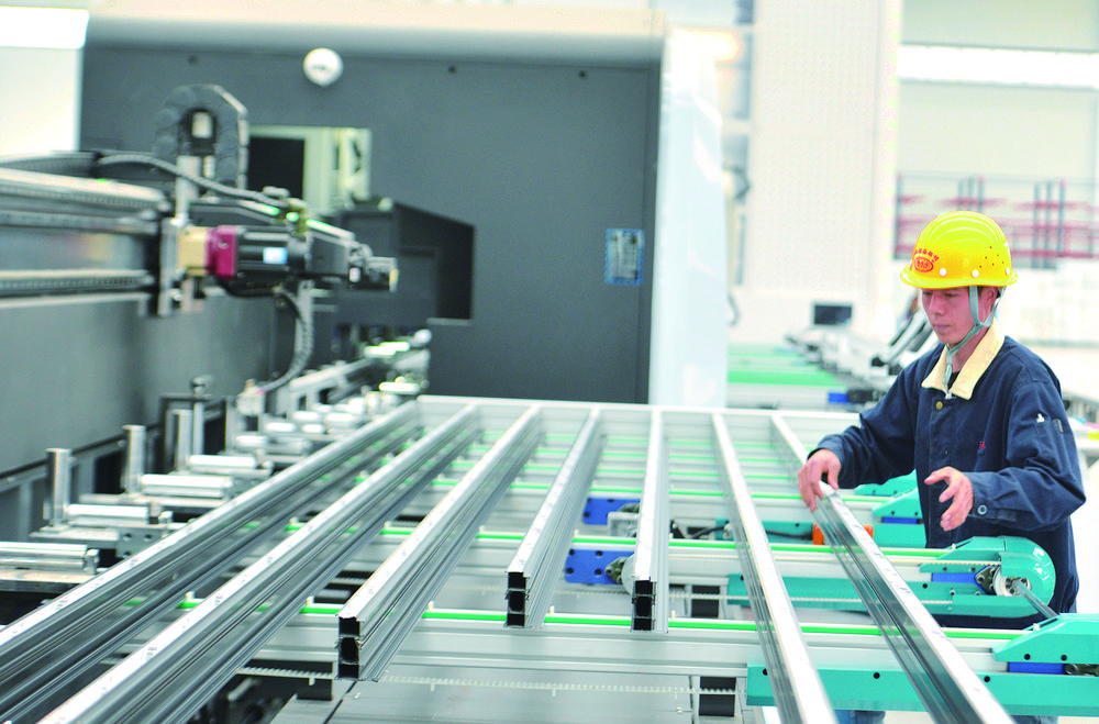 国庆中秋假期,在广河经济开发区甘肃福禄海铝型材有限公司生产车间,工人坚守工作一线赶制铝型材。 通讯员 史有东 摄...