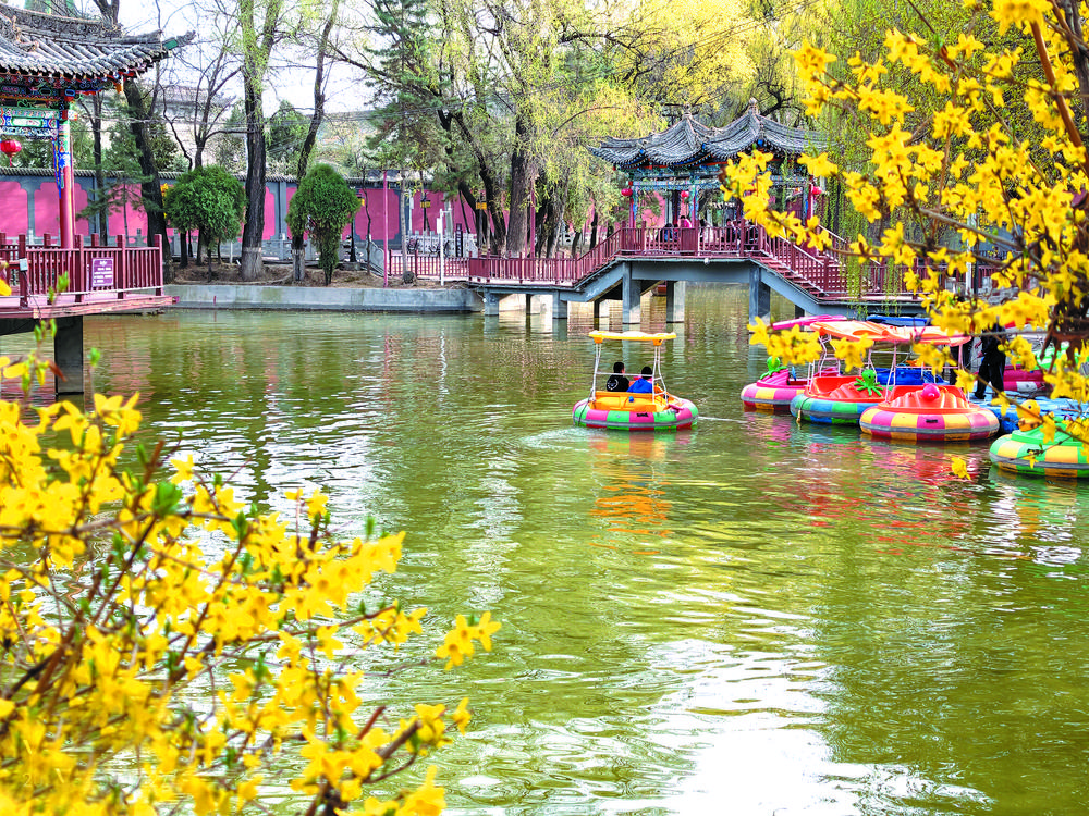 时下,临夏市人民红园春花竞相绽放,吸引游人划船赏景,一派春和景明好风光。临夏融媒记者雍桂花 摄...