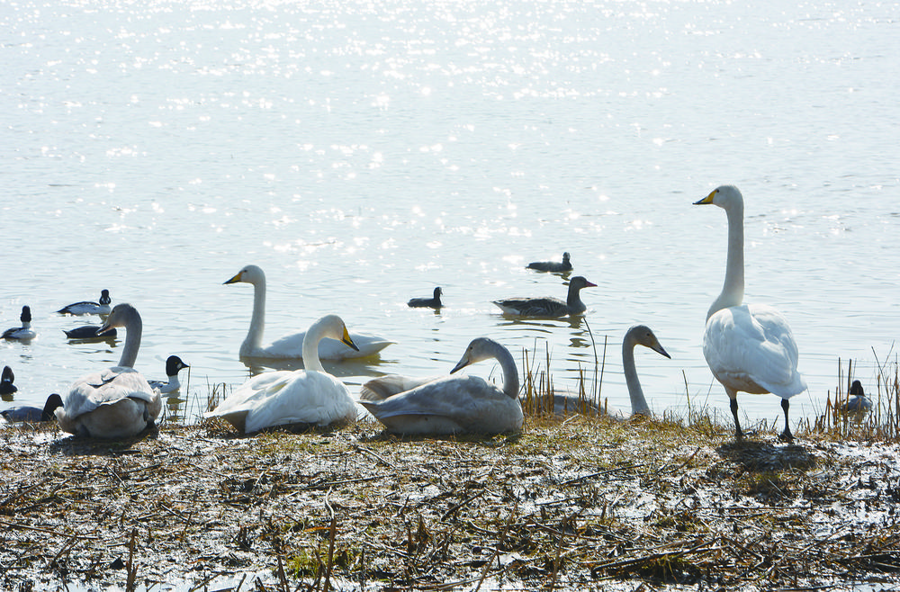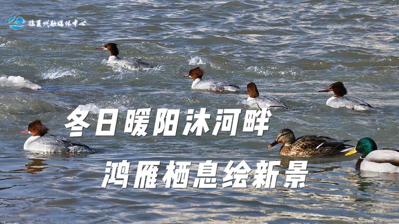 永靖县三河口黄河湿地迎来众多越冬的天鹅等候鸟栖息、觅食