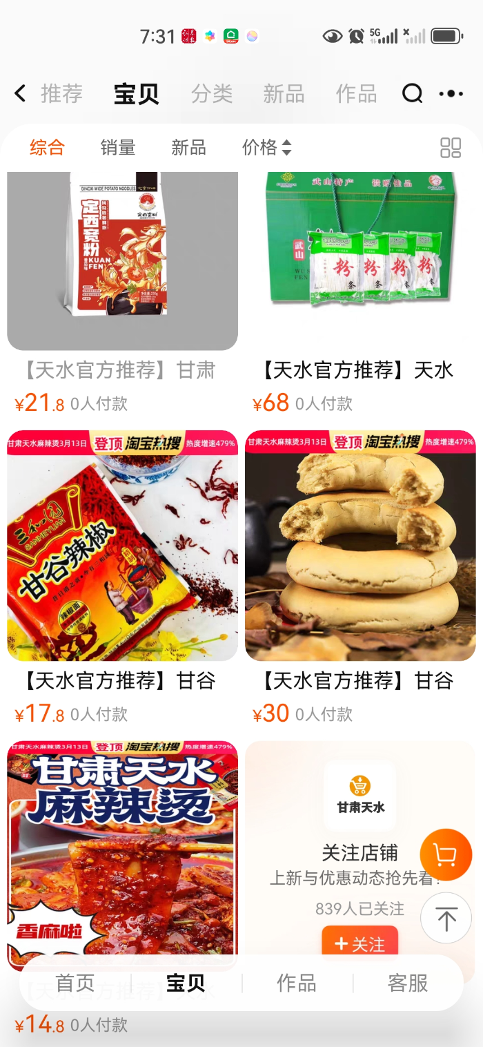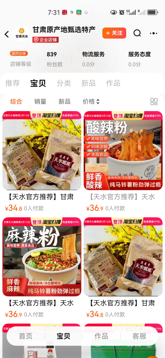记者在“甘肃原产地甄选特产”店铺内看到,目前店铺已经上架近10种与天水麻辣烫相关的商品,包括天水麻辣烫干拌料、天水呱呱、甘谷辣椒、酸辣粉、定西宽粉等,每一款被标明了“天水官方推荐”。