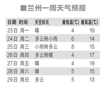 每日甘肃网10月23日讯(西部商报记者张云)未来三天,我省局部地方有小雨或雨夹雪;省内其余地方晴或多云。兰州本周天气以多云和晴天为主,其中周二有一场降雨,早晚温差大,市民外出注意防寒保暖。