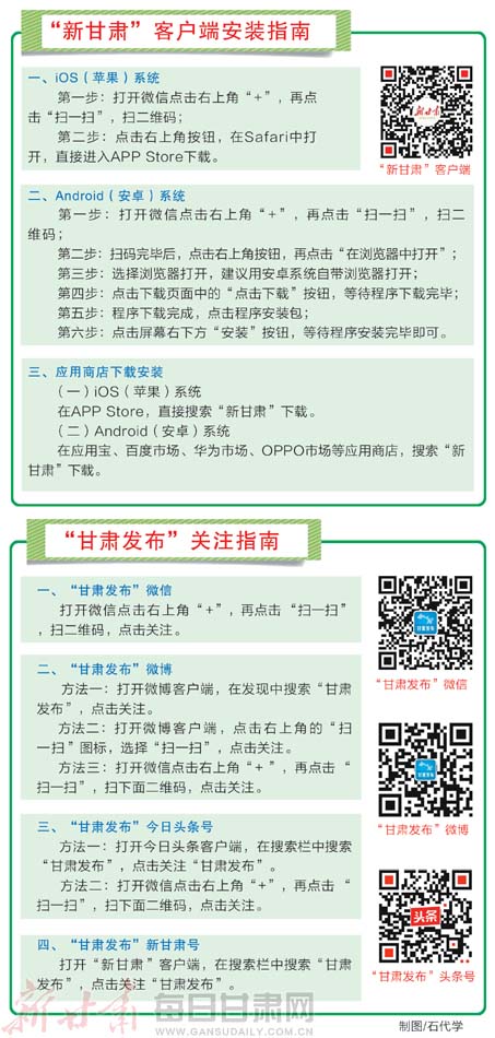《通知》要求,各地各部门要将推动下载“新甘肃”客户端和关注“甘肃发布”工作作为落实党委意识形态工作责任制和网络意识形态工作责任制的一把手工程,加强组织领导,明确专人负责,精心组织实施,加强督促检查。同时,各地各部门以及各社会团体、高等院校的政务发布新媒体、各县市区融媒体要尽快入驻“新甘肃”客户端,逐步形成全省“一张网”的移动传播新格局。