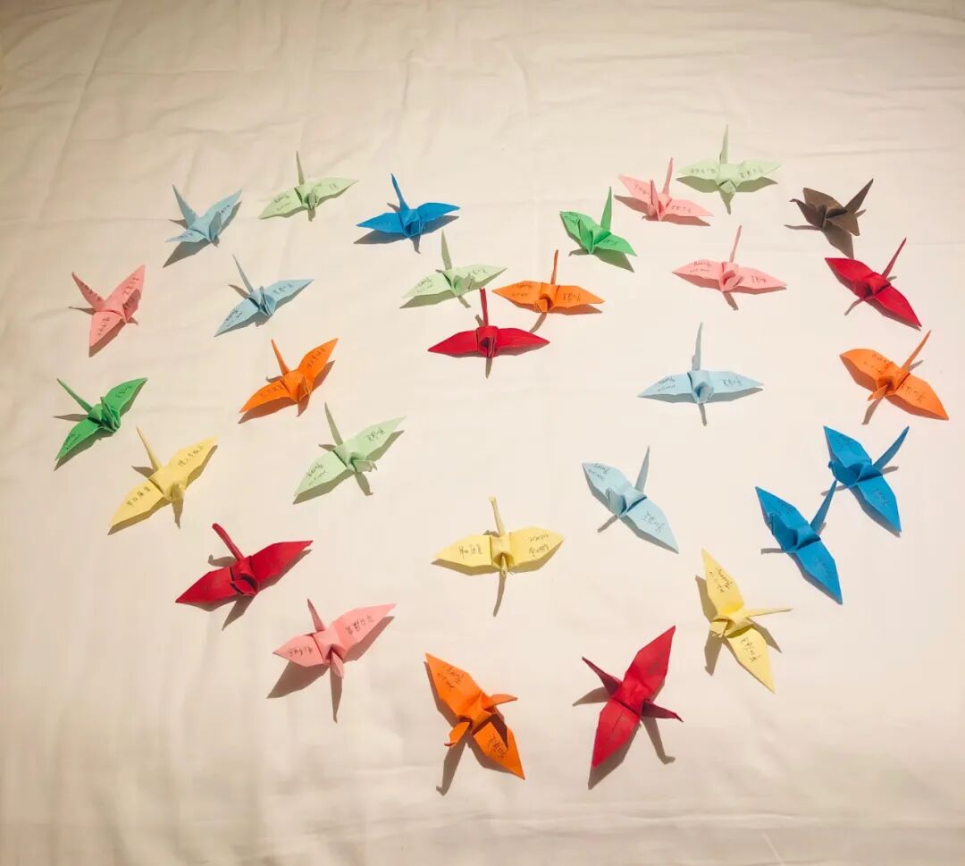2月14日西方情人节那天,王晓嘉和同事利用休息时间叠了38个千纸鹤。每张千纸鹤上都写着“早日康复,节日快乐”,由于没有专业用纸,原本一个小时就可以完成的事情,她们叠了一下午。她说虽然是一只小小的纸鹤,但却承载了医疗队队员们无限的祝福,“希望大家好好配合,在我们的陪伴下坚强、乐观,一起战胜病魔!” 她回忆当天好多病人收到后都激动地哭了,“我们也是强忍着眼泪。”有病人出院后,将千纸鹤小心翼翼的装进了包里带回家。