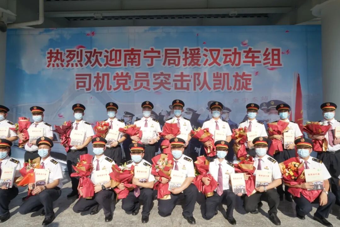 得知他们是援汉归来的动车司机,来往旅客也纷纷竖起大拇指,向他们致敬。“在驰援武汉值乘的3个月时间里,党员突击队圆满完成驰援任务,展示了动车司机的使命担当,我们为你们骄傲!”在欢迎仪式上,南宁局集团公司领导向23名动车司机致以崇高敬意和亲切问候。