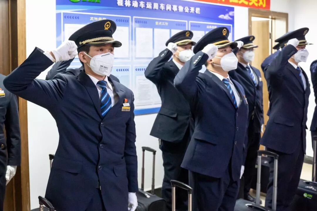 5月6日16时29分,23名援汉动车组司机乘南京南至南宁东G1545次动车抵达桂林北站,平安凯旋!