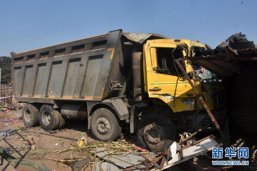 这是1月19日在印度古吉拉特邦苏拉特市附近拍摄的交通事故现场。