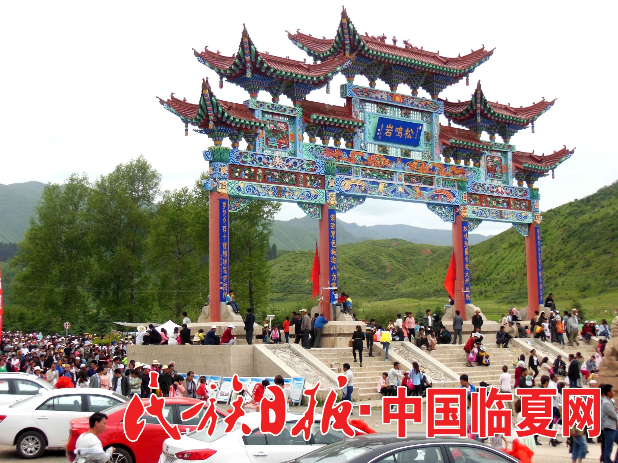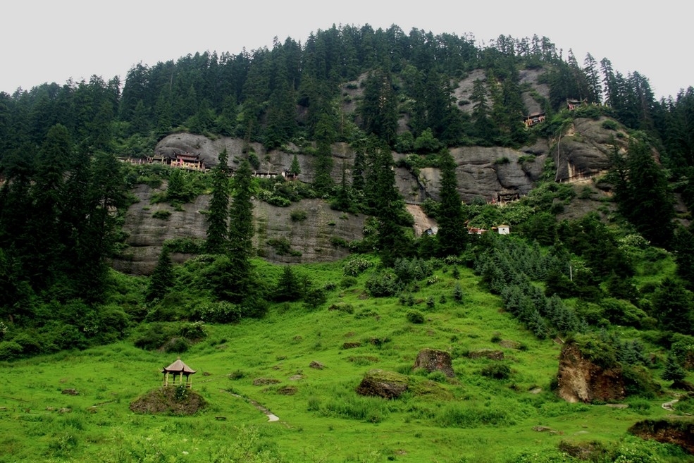 松鸣岩国家森林公园,位于临夏州和政县南25公里处的太子山林区。松鸣岩因每当风起,松涛大作,奔腾砰訇,如战鼓擂擂、似马奔腾而得名。松鸣岩有三座并峙的山峰,为南天台,西方顶、独岗岭,峰形奇特、芙蓉俊貌,是历代殿宇楼阁,亭榭飞桥荟集之地。早在元代,就有人在此凿洞塑佛,修庙建寺,修行隐居,明代初具规模,为古河州八景之一。