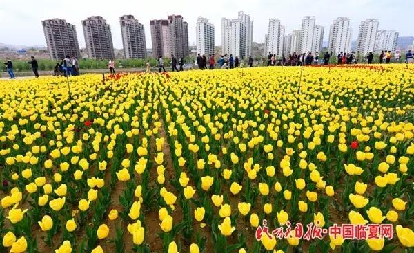 春日的临夏东郊公园碧水荡漾、春花烂漫