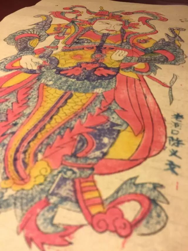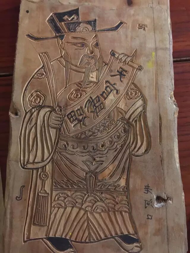 老河口木版年画为套色年画,有起稿、刻线版、刻套色板、印刷等工序。