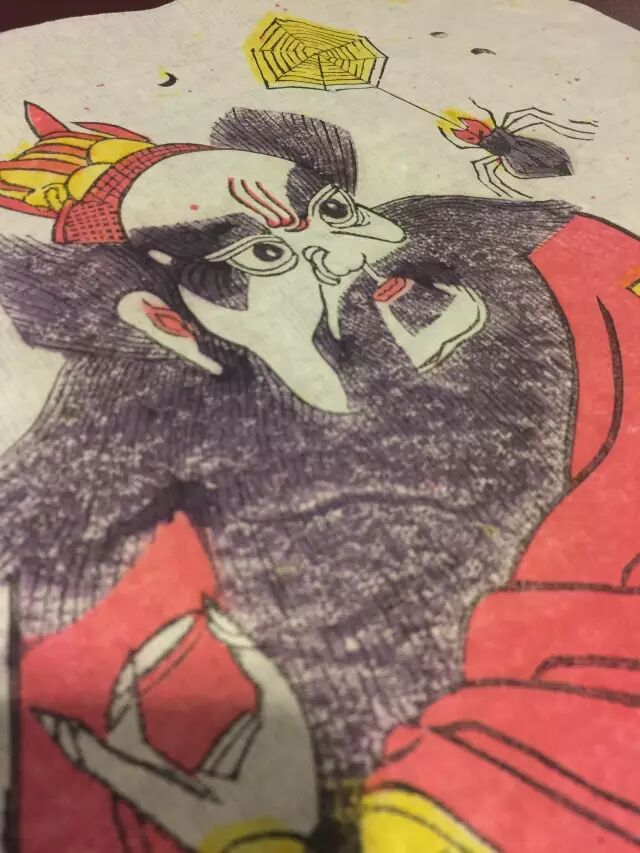雕好的线版刷上一层墨,用宣纸轻轻的覆盖住,然后再用特制的刷子平平的刷几下,一张木版年画的雏形就做好了。整个过程看上去简单,但实际操作起来非常困难,首先要能够将宣纸不偏不倚的放在线版上,宣纸一旦接触线版便不能再移动,否则就会染上墨弄脏宣纸。其次在刷的时候,用力大了宣纸就会破会起皱,用力小了又怕宣纸会跟着刷子一起动。其中的细微把控,全要靠手艺人的经验和手感。