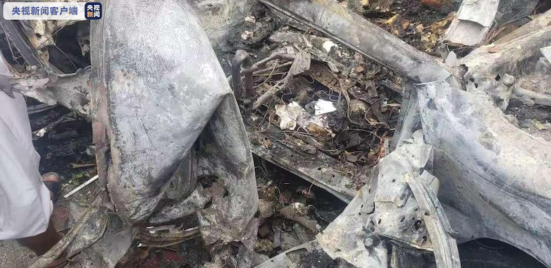 报道员在现场拍回了多组照片,当中可以清晰地看出,目前现场其实只有两辆车辆损坏严重,如果是美军第一次空袭扔下来的火箭弹引发的二次爆炸造成更多的人员死伤,那么在现场爆炸的威力会更大,而不是仅仅只有一辆车受到重大的损失,而另外一辆车是轻伤。
