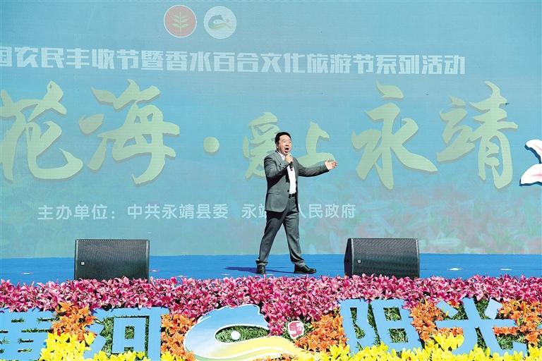 9月20日,在永靖县“庆中秋·迎国庆”庆祝中国农民丰收节暨“邂逅花海·爱上永靖”香水百合文化旅游节系列活动开幕式上,“花儿”歌手何清祥、石光林、马小兰给广大群众奉上了一场精彩的演唱。
