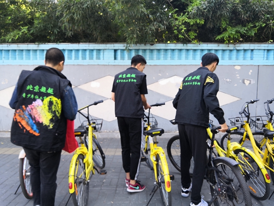 罪错少年参与实践探索项目“城市历奇”,徒步沿路整理共享单车。受访者供图