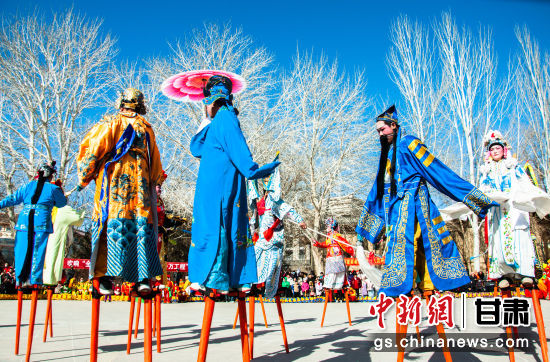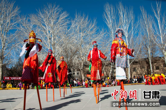 2024年春节假期,敦煌市组织城乡9支社火队在城区开展社火展演活动,让游客近距离体验和感受敦煌民俗文化的独特魅力,营造红红火火、热闹喜庆的节日氛围。王斌银 摄