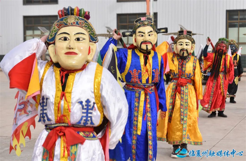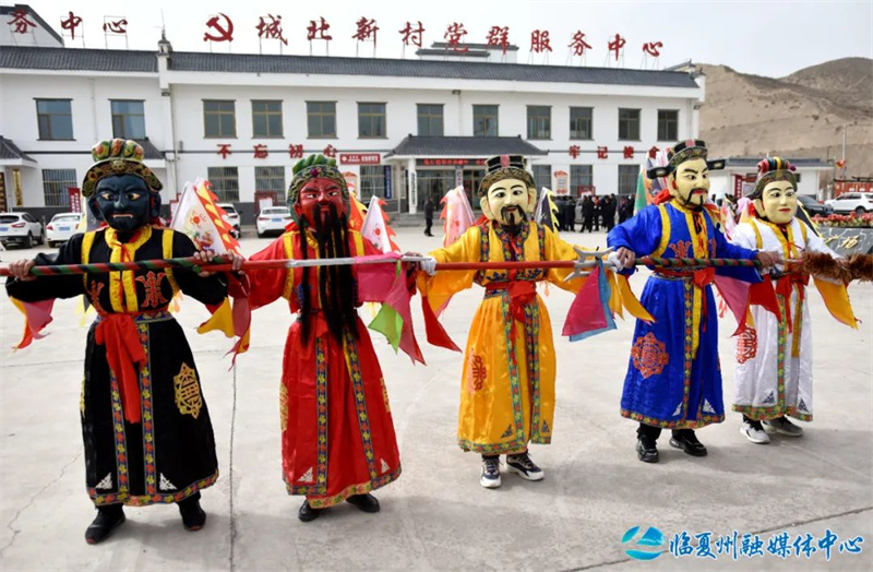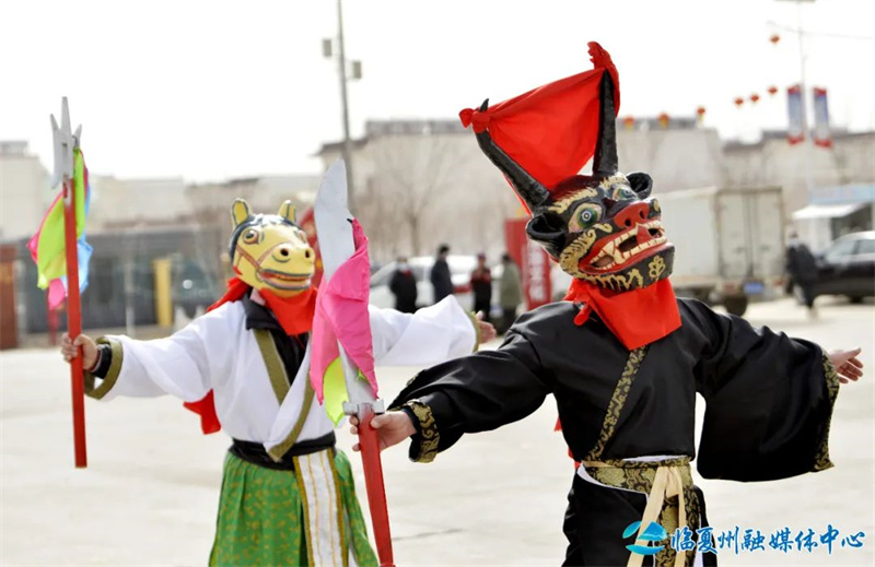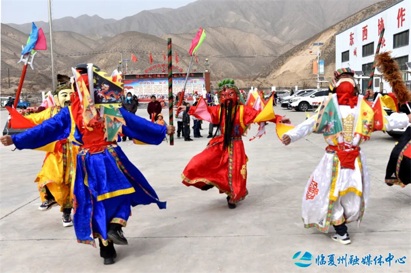 2月19日,农历正月初十,在永靖县刘家峡镇城北新村,村民们跳起传统的傩舞,表演《五将》《牛头马面》《会首》等传统剧目,祈福新年国泰民安、风调雨顺。 永靖傩舞民间俗称“七月跳会”,起源于远古时代的图腾崇拜和宗教祭祀活动,成形于明朝,是我国极其珍贵的历史文化遗产。2007年,永靖县被命名为“中国傩文化之乡”;2008年,“七月跳会”被列入国家级非物质文化遗产名录。