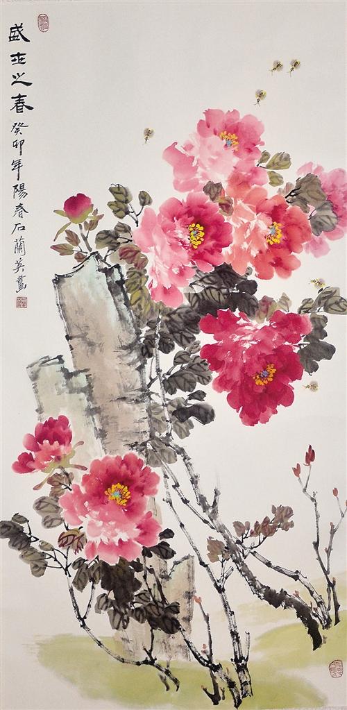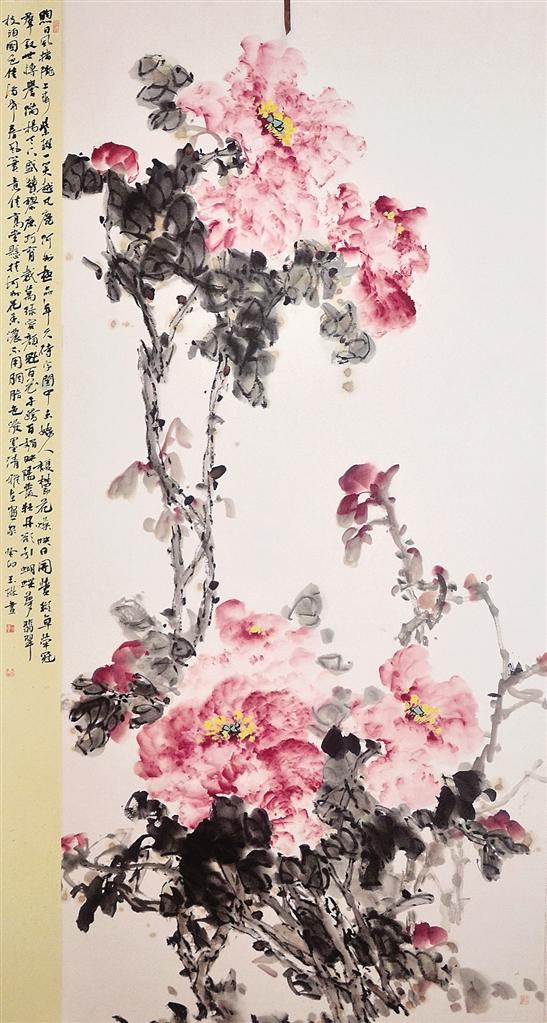 牡丹作为富贵之花,虽盛花期却短。在小城若错过了牡丹盛开的季节,那么在画笔下的牡丹里敞开心思,在牡丹的江山里任心思翻飞也是享受。画牡丹、咏牡丹是书画家们热衷之事,钟爱牡丹的艺术家们将牡丹浓墨浓彩地“搬”到纸上、挂在墙上。家中挂一幅牡丹画,家居氛围不但高雅和谐,还修心养性、陶冶情操。