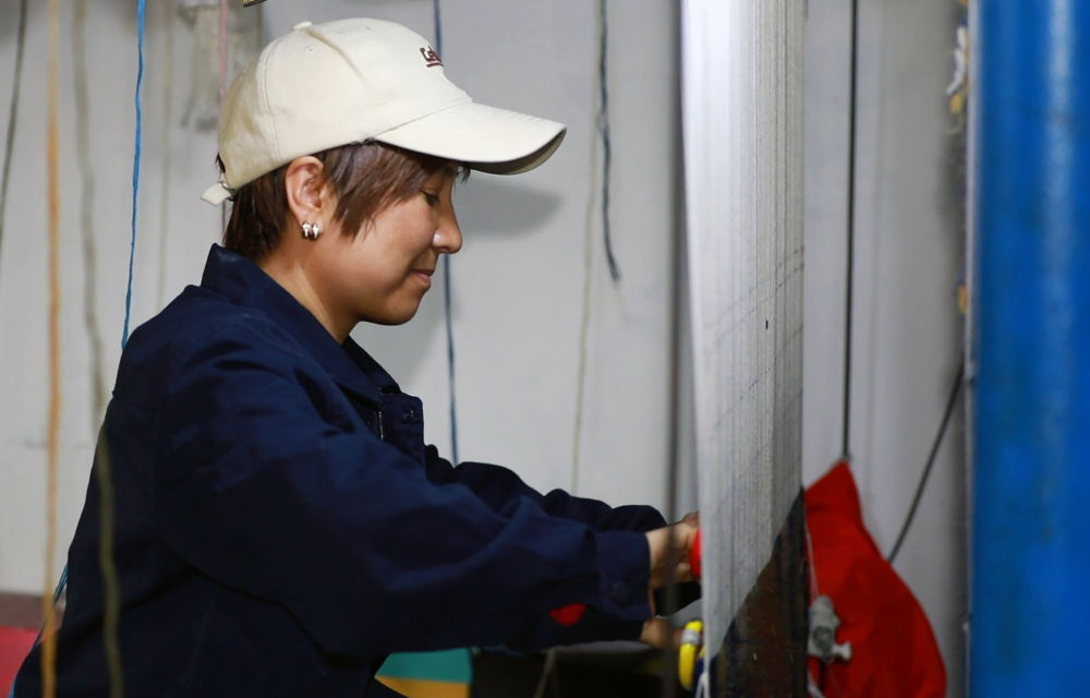 36岁的吴鸿桃来自古浪县大靖镇长城村,此前在家务农。2023年,她来到陇原巧手传统手工制品有限公司。“这里很欢迎我,安排老师傅手把手教我学习十几道工序,大概一周就学会了。”回想起自己当初亲手编出的第一条地毯,吴鸿桃依然兴奋不已。