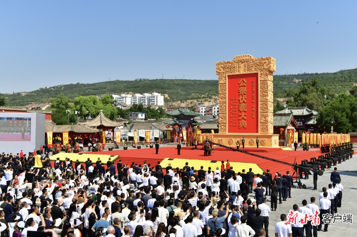 恭读祭文毕,鞠躬敬祭。全体行三鞠躬礼,共同表达对人文始祖伏羲创世功绩的尊崇。