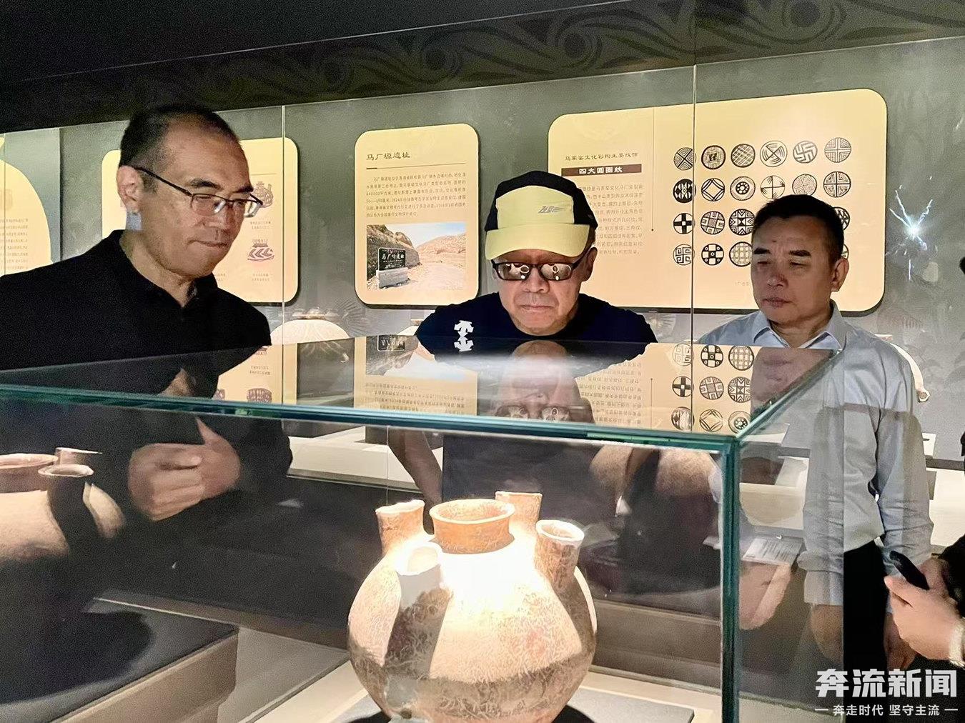 在临夏州博物馆的静穆空间里,时间仿佛凝滞于陶土之上。马家窑文化彩陶器身上流畅的旋涡纹、锯齿纹,以其惊人的现代感打动了湖南文艺出版社社长、《芙蓉》杂志社社长兼主编陈新文。“这些线条与色彩蕴含的创造力令人震撼!”他俯身凝视展柜,声音里带着惊叹,“先民对抽象与具象的把握,是一种超越时空的生命对话。”陈新文敏锐地捕捉到线条背后的东方哲思。在他看来,彩陶上每一道看似随意的勾画,都暗藏着先民对世界的质朴理解与深沉敬畏,精于书法的他联想到与书法艺术的线条精神息息相通。当艺术从生活中自然生长,便拥有了穿透时间的永恒力量。
