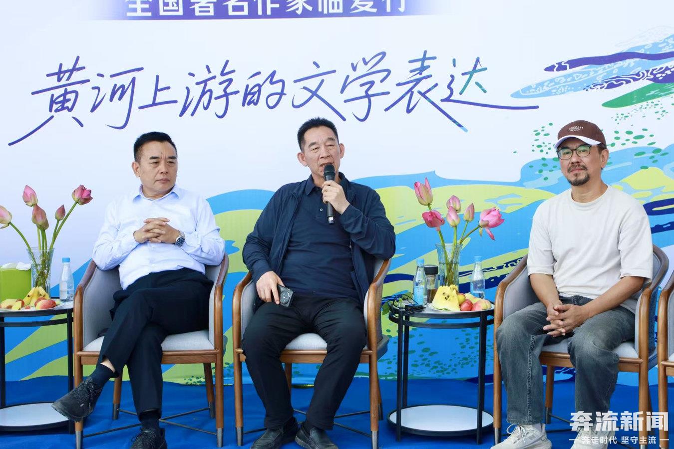 下午3时许,永靖黄河三湾,碧水蜿蜒,清风拂岸。一场题为“黄河上游的文学表达”的文学漫谈在此展开。施战军、王跃文、沈苇、张莉、贾梦玮、陈新文、刘颋、曹元勇、张战、吕晨、叶舟共11位国内文学界名家临水而坐,回望连日来临夏行的见闻,畅谈河州印象,畅叙黄河文化。