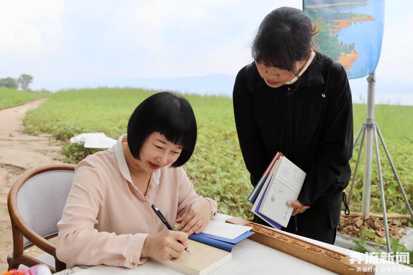在莲花镇渡口,一位专程从临夏市赶来的读者张发海热情地迎了上来,作为沈苇老师的忠实“书迷”,他特意前来与“偶像”相见,并送了一套临夏盖碗茶盏,而沈苇回赠了自己签名本书。两人边走边聊,临别之际,热切的互访邀请在河风中传递:沈苇真诚邀约张发海他日做客杭州,而张发海亦满心期待大家再来临夏,让这份跨越山水的文化情缘,在更广阔的天地间延续、生长。