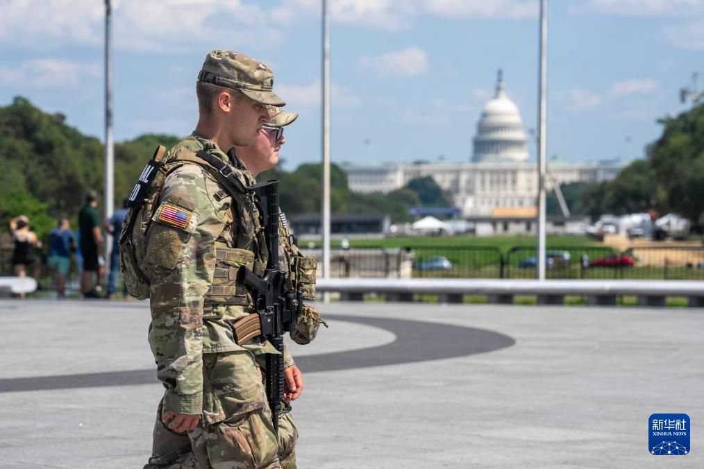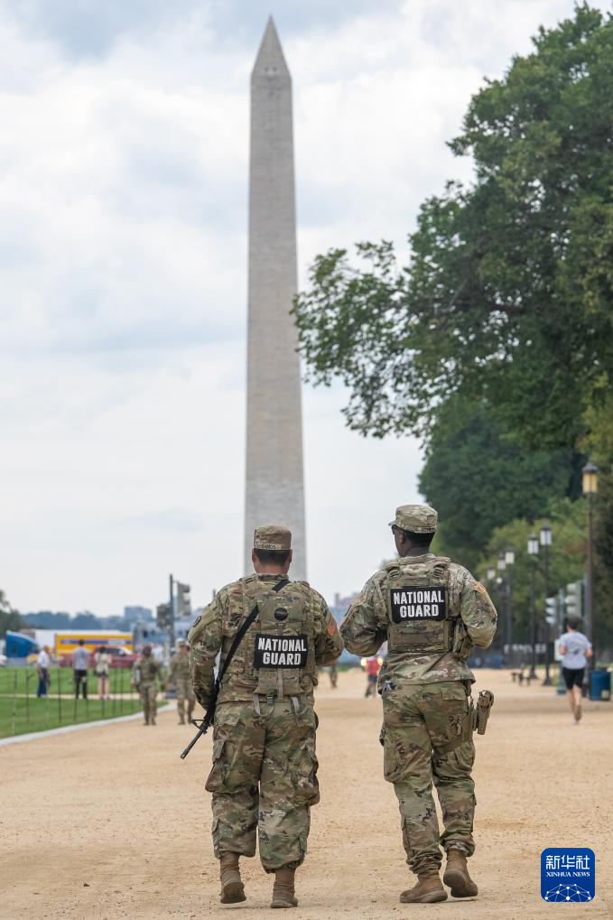 9月4日,国民警卫队成员在美国首都华盛顿巡逻。新华社记者胡友松摄