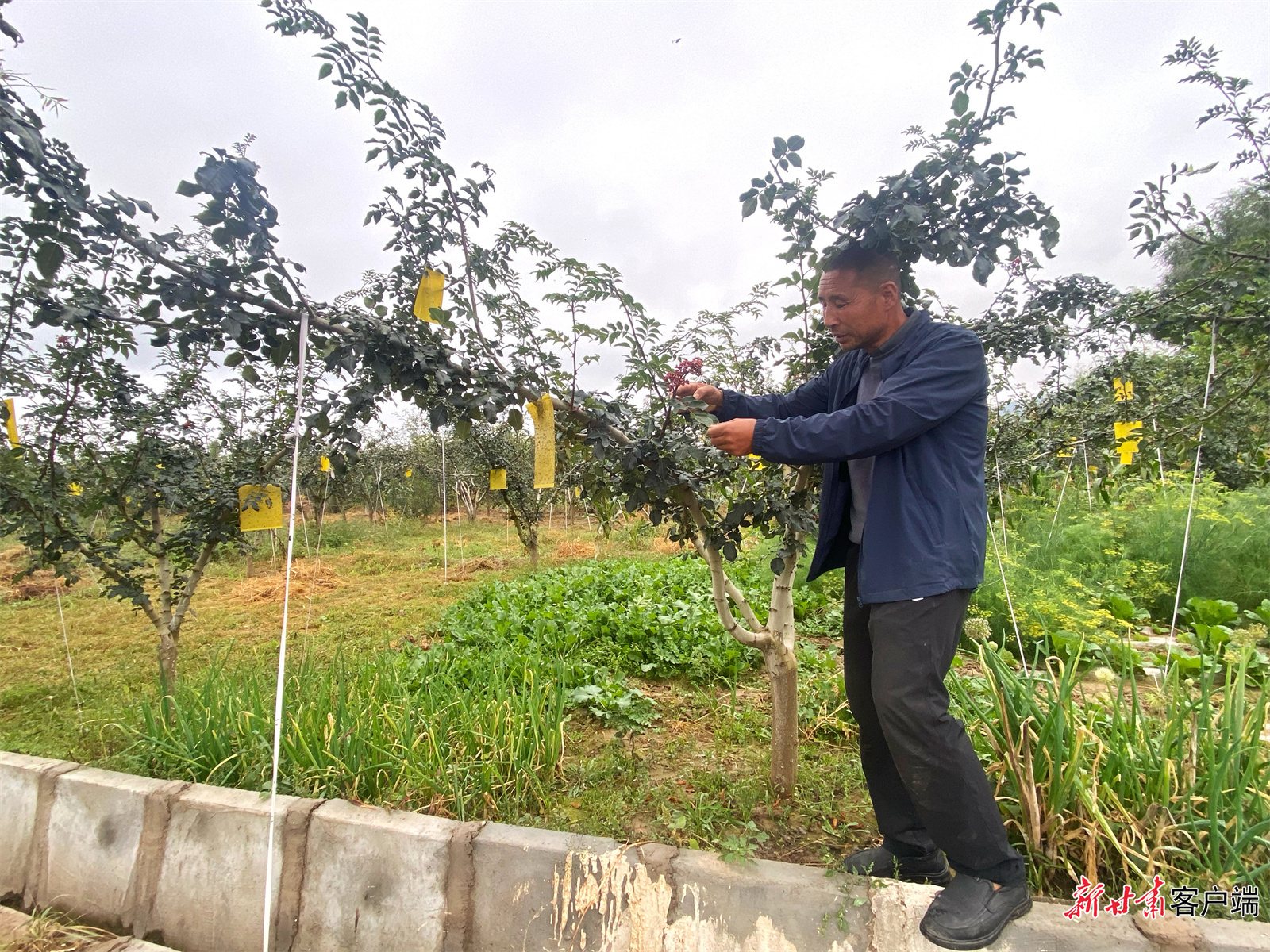 鲁孝周介绍花椒树长势。新甘肃·甘肃日报记者 王虎摄