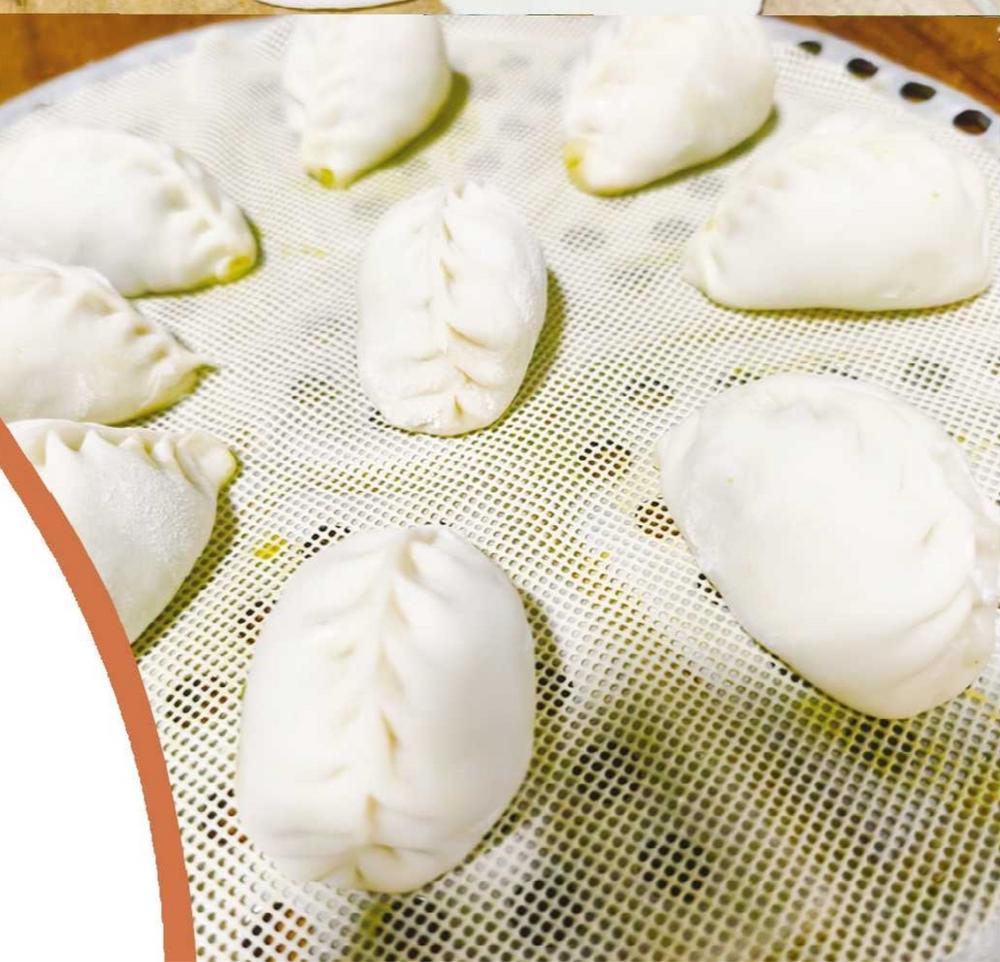 包制时考验手艺,左手平稳托住面皮,右手用勺子舀取适量馅料填在皮中央,拇指与食指配合均匀用力捏合边缘,捏出细密的柳叶褶,褶子要匀、要密,不仅是为了美观,也是为了蒸制时能锁住鲜香,不让汤汁流失。一双巧手翻飞间,一个个形似柳叶又小巧玲珑的格目成型了,码在蒸笼里,像一列列整装待发的小船。