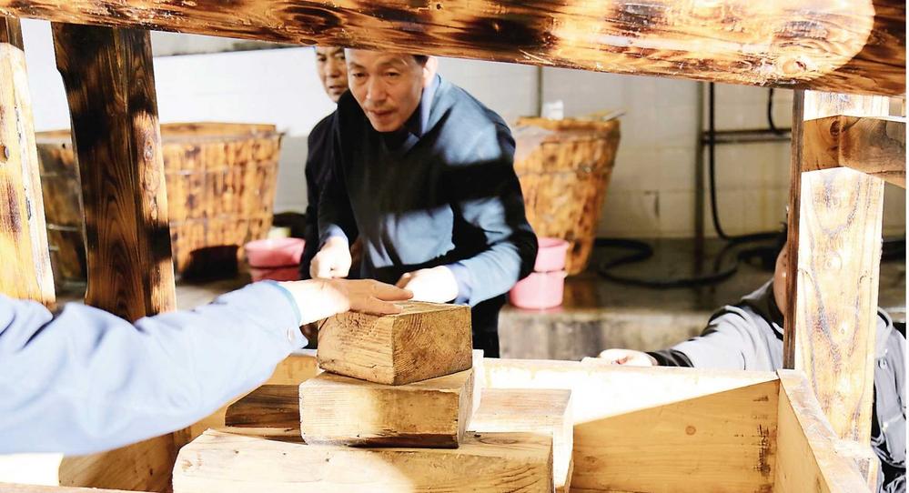 压榨与煎酒是分离酒液与提纯的关键。发酵成熟的酒醪,呈现出浓稠的糊状,散发着醇厚的酒香。匠人将酒醪装入木质榨厢,采用传统重压法,缓慢加压。清亮的酒液从榨厢的缝隙里缓缓渗出,顺着凹槽流入陶盆,色泽呈琥珀色,澄澈透明。刚榨出的原酒,还需进行“煎酒”——也就是灭菌处理。匠人将原酒倒入铁锅,加热至沸腾,保持10分钟。高温既能杀灭酒中的有害微生物,延长保质期,又能让酒液中的蛋白质等杂质凝聚沉淀,让酒体更澄澈。煎酒时匠人需全程值守,控制火候,防止酒液溢出,还要观察酒花的变化,细花如锦、持久不散,便是煎酒合格的标志。