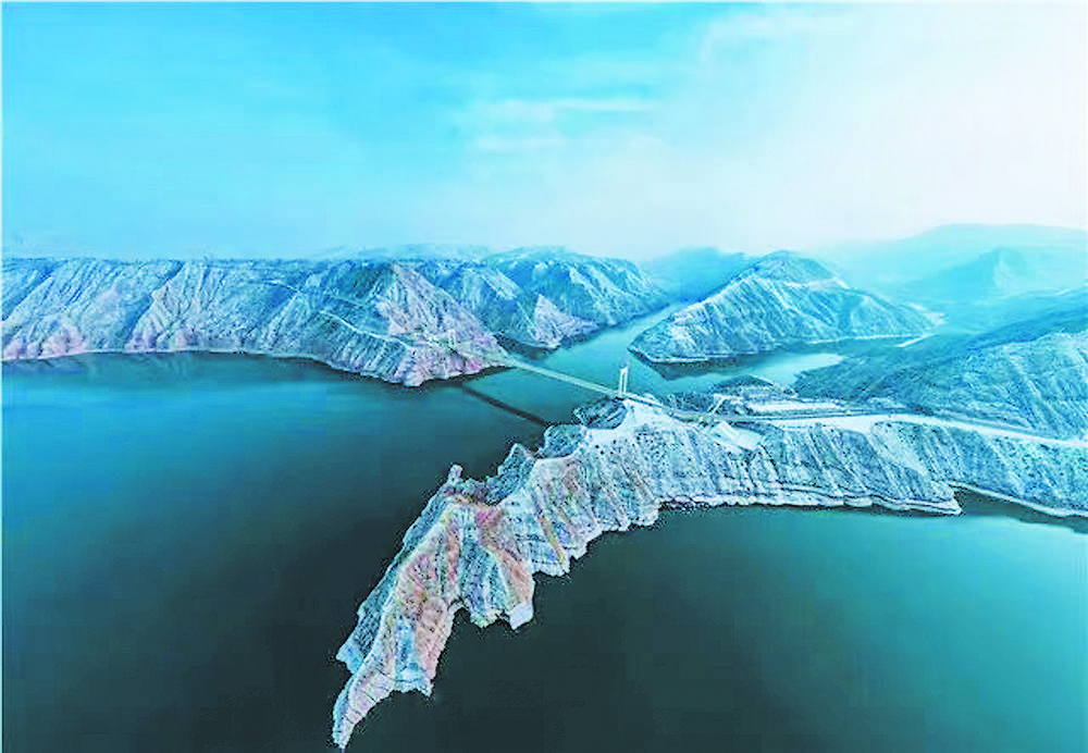 刘家峡水库流水冲积形成的沟壑宛如躺在大地上的一棵大树